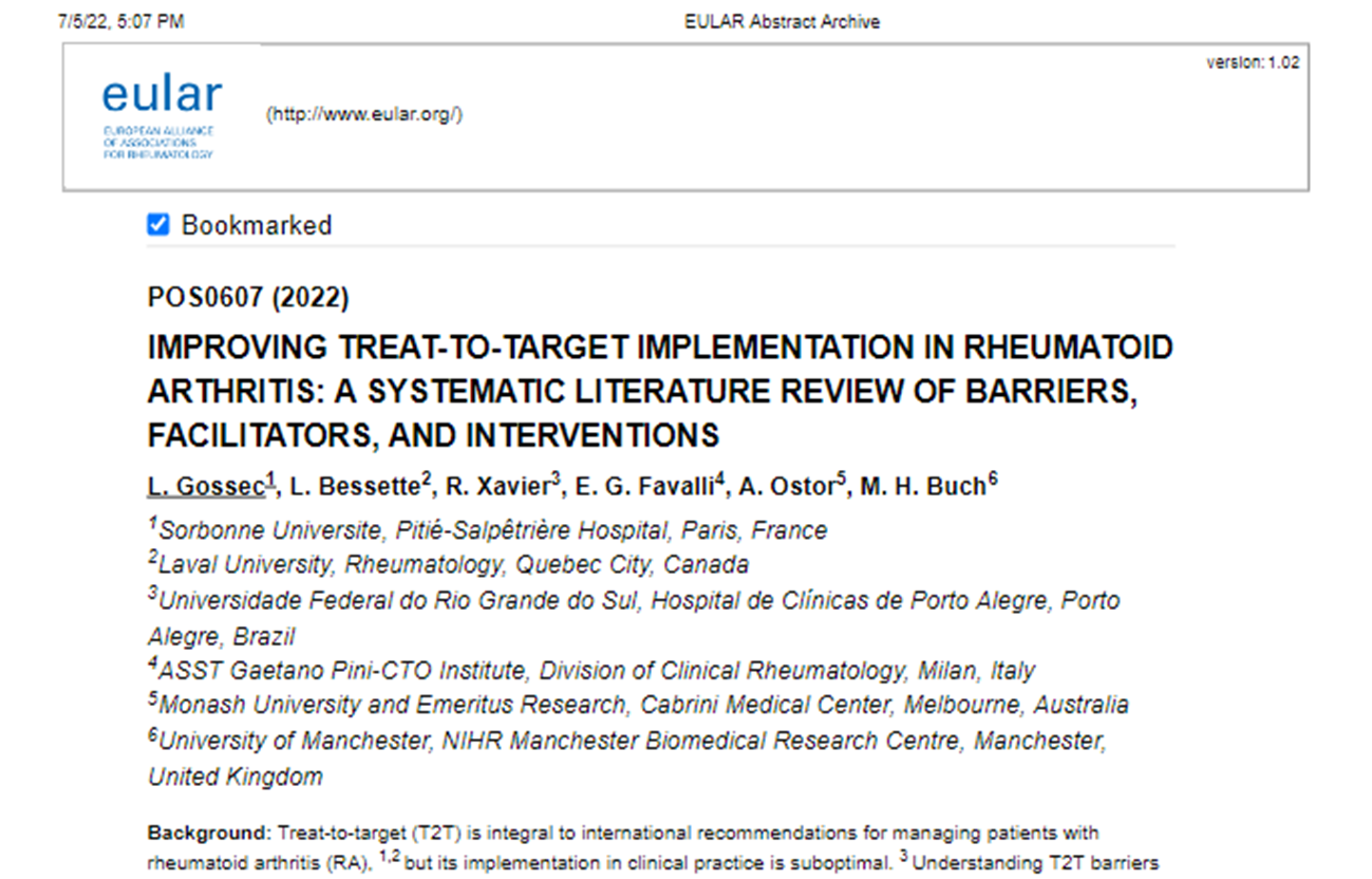 The main output was a narrative synthesis, presented at 2022 EULAR Congress.