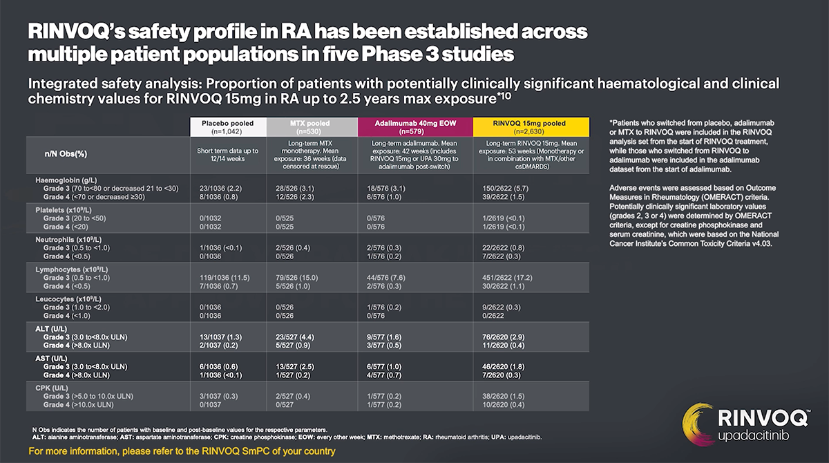 Please see the RINVOQ Summary of Product Characteristics for complete prescribing information.