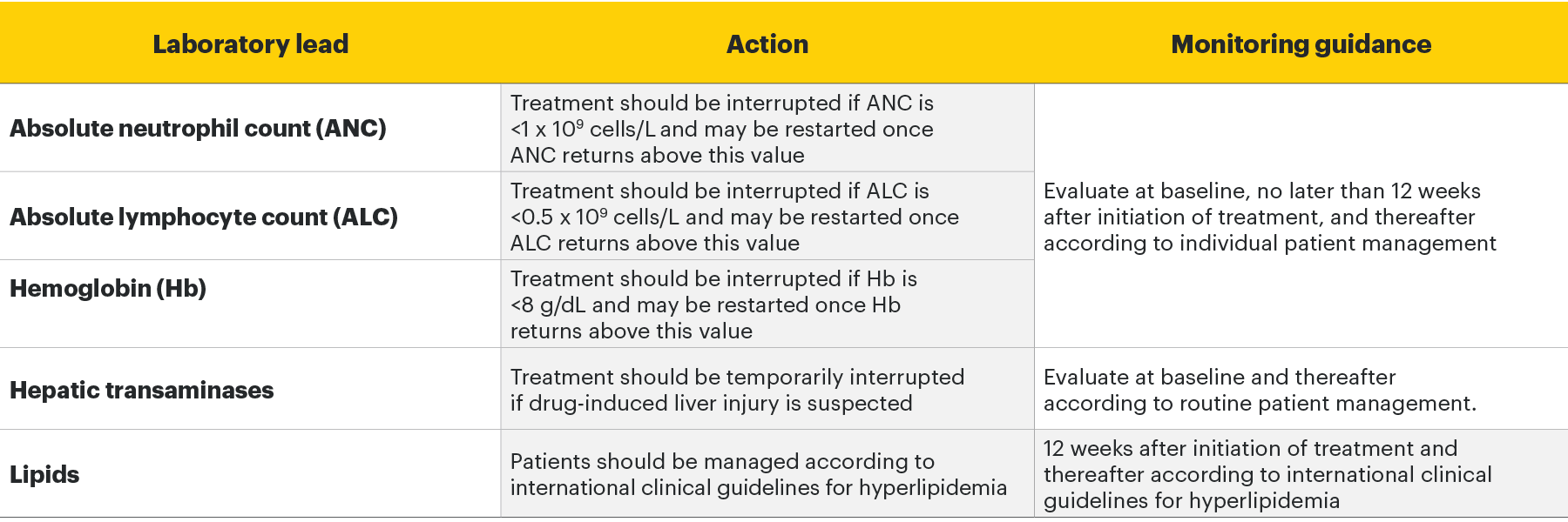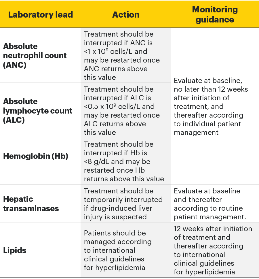 Treatment should not be initiated, or should be temporarily interrupted, in patients with hematological abnormalities observed during routine patient management.