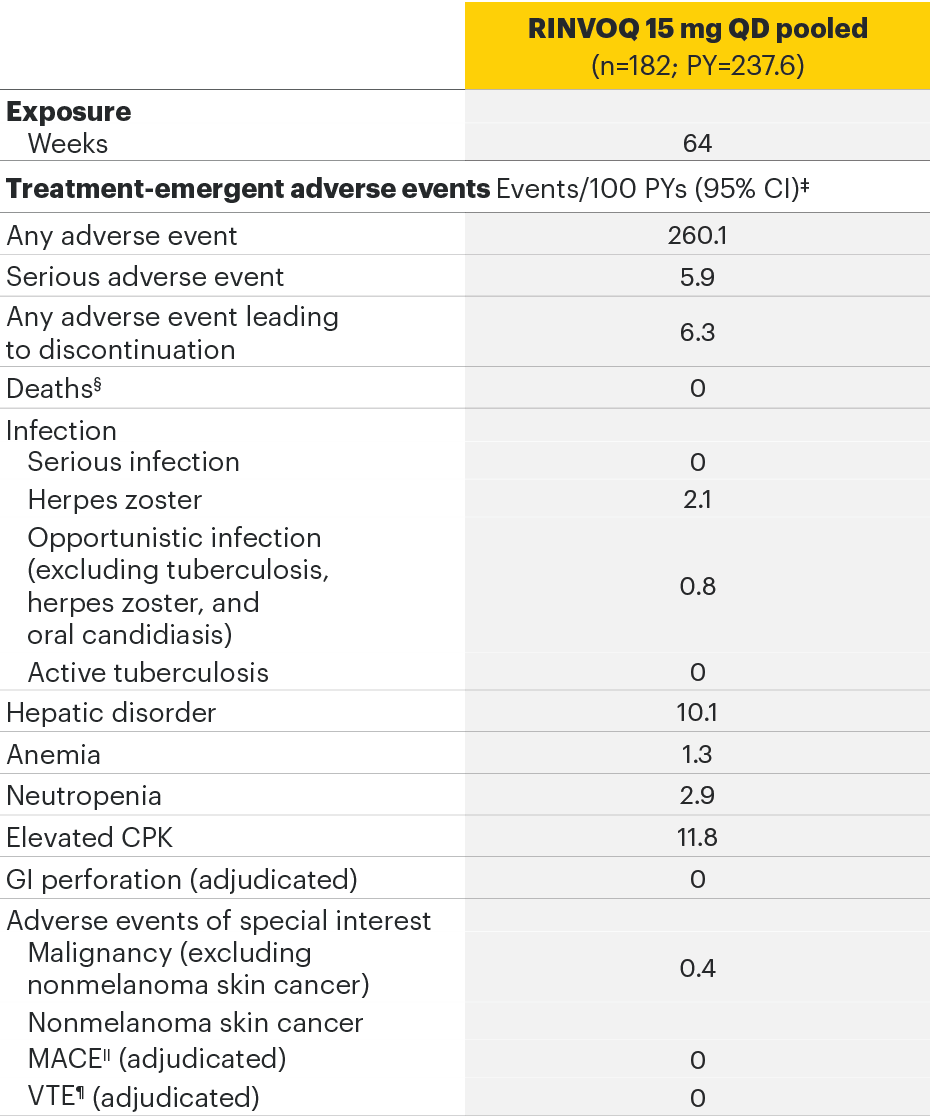 For additional safety information, please see the Important Safety Information link at the top of the page, or for complete prescribing information, the RINVOQ SmPC.