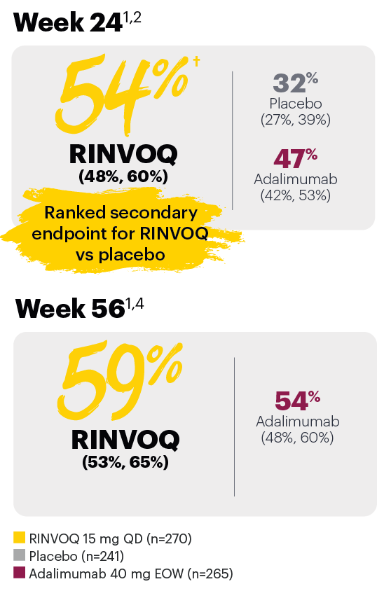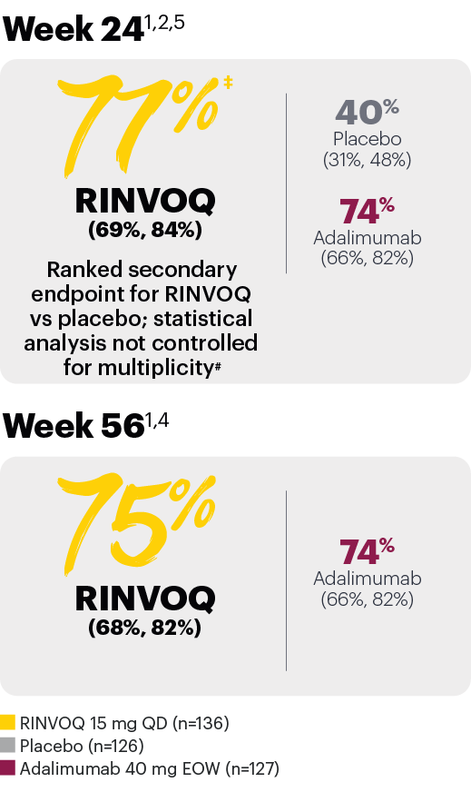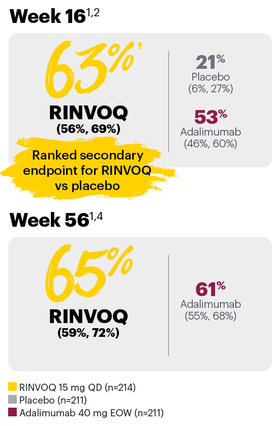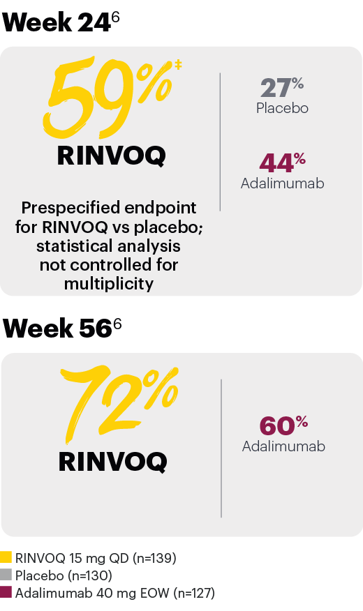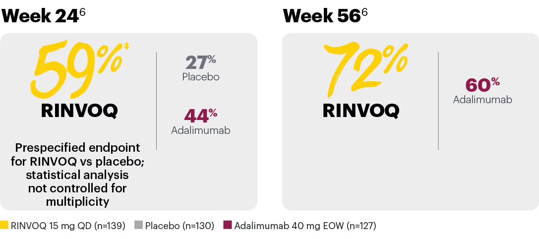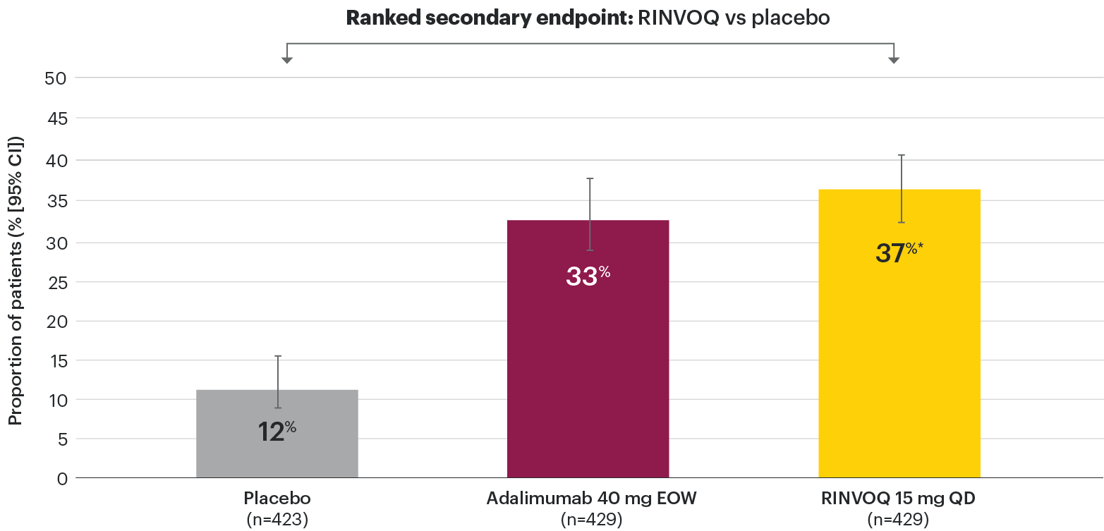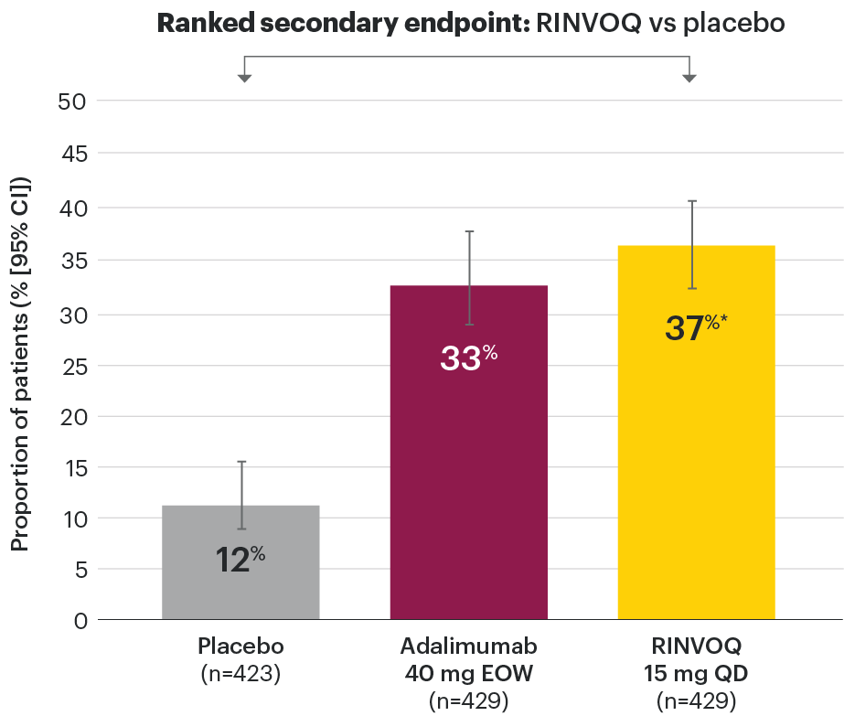 *Superiority of RINVOQ 15 mg vs adalimumab could not be demonstrated, which prevented the testing of significance for secondary endpoints lower in the testing hierarchy.