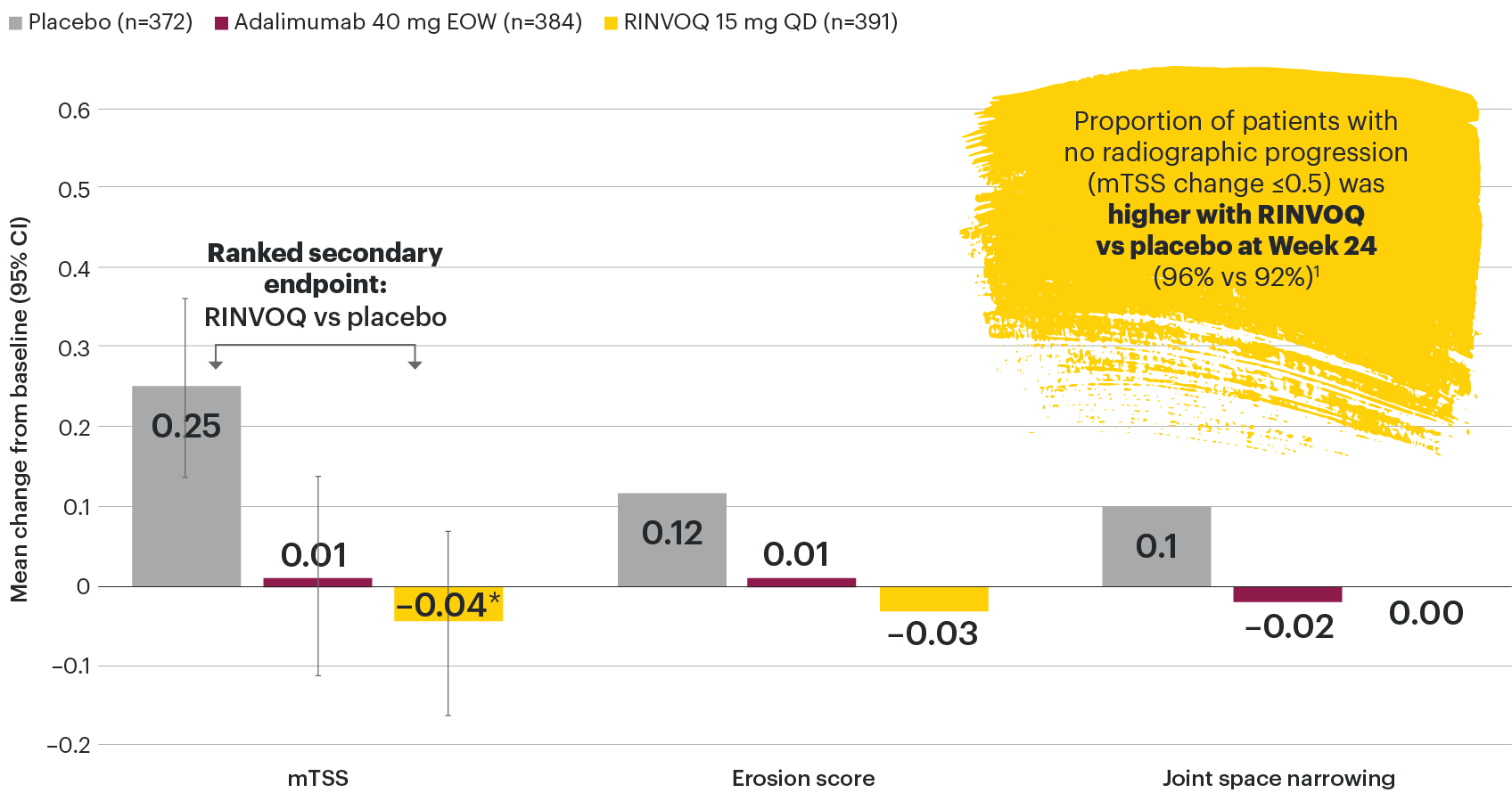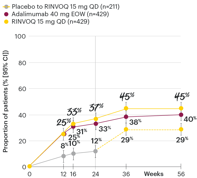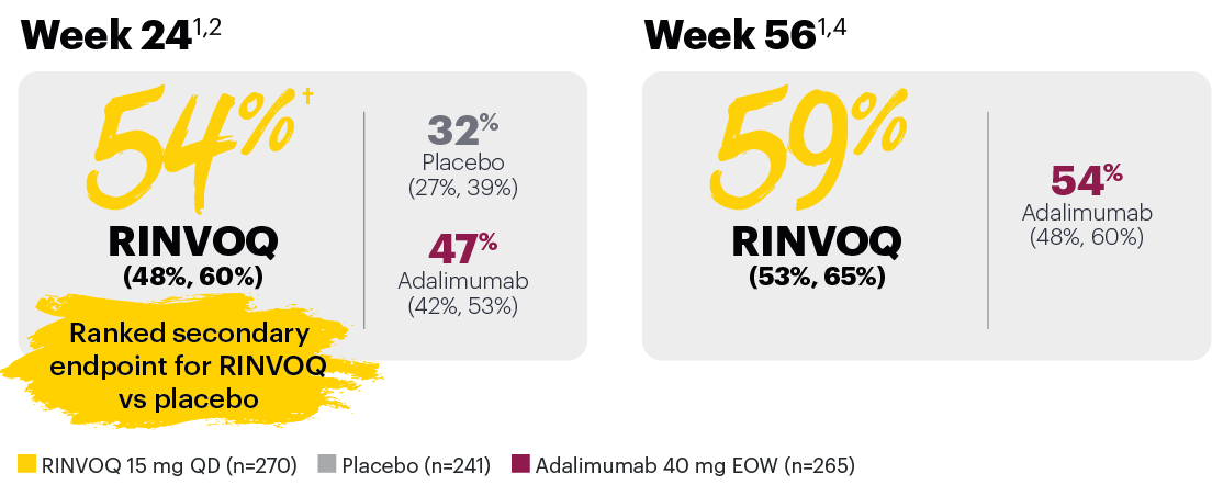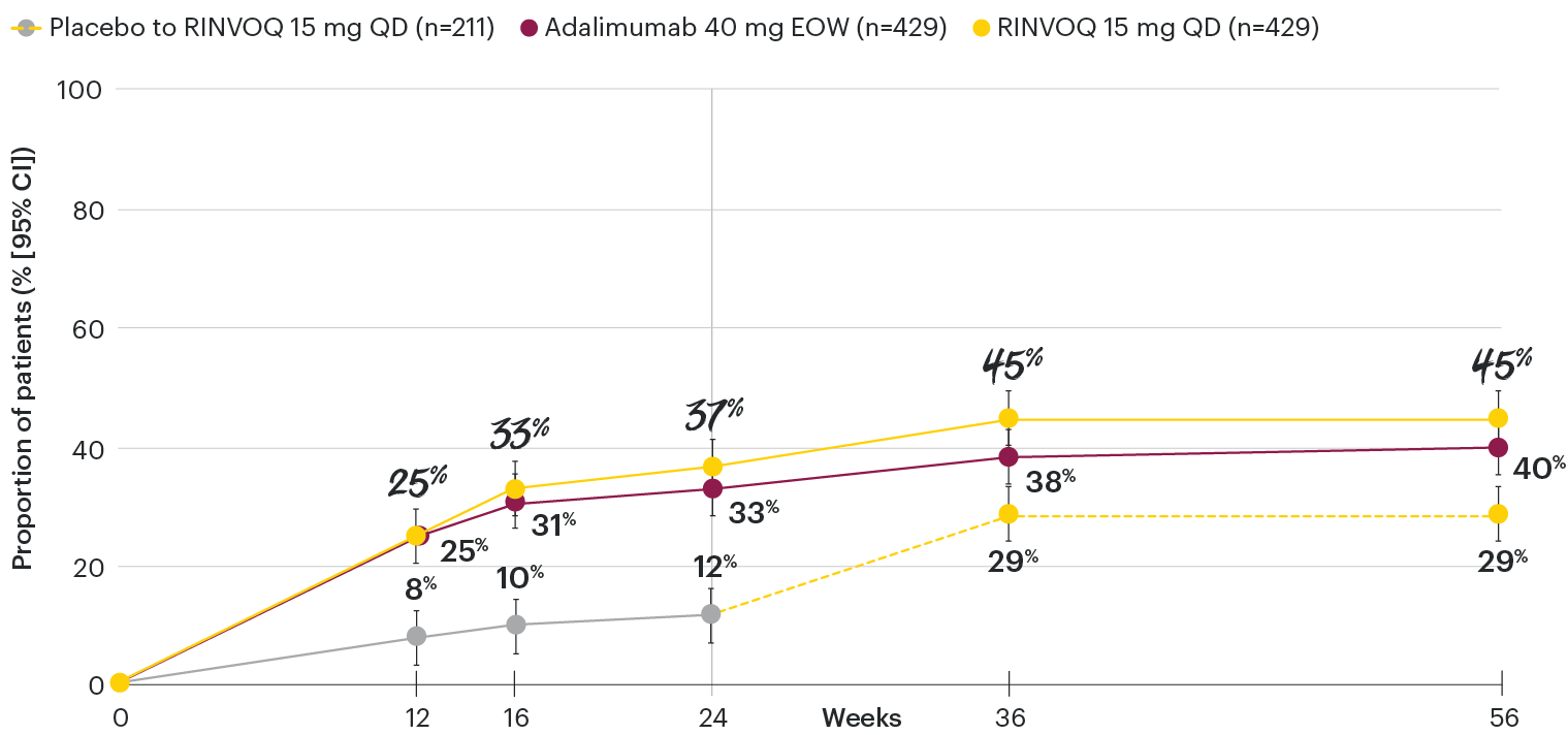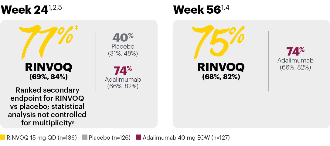 *Superiority of RINVOQ 15 mg vs adalimumab could not be demonstrated, which prevented the testing of significance for secondary endpoints lower in the testing hierarchy.