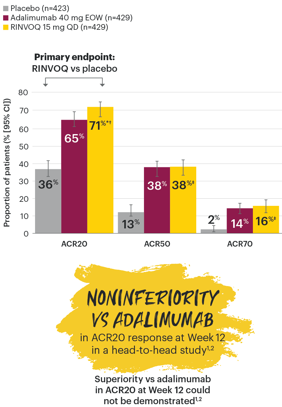 ACR20 for RINVOQ vs placebo at Week 12 was a primary multiplicity-controlled endpoint.