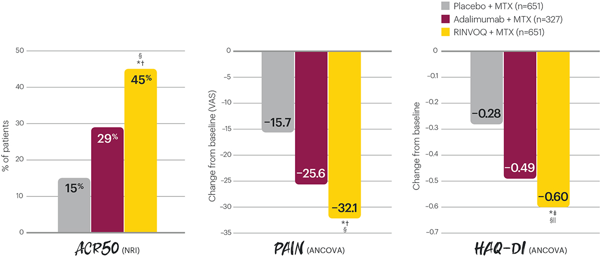 §Indicates multiplicity-controlled superiority comparison of RINVOQ + MTX vs adalimumab + MTX.