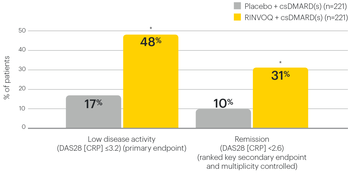 *P≤0.001 vs placebo + csDMARD(s)